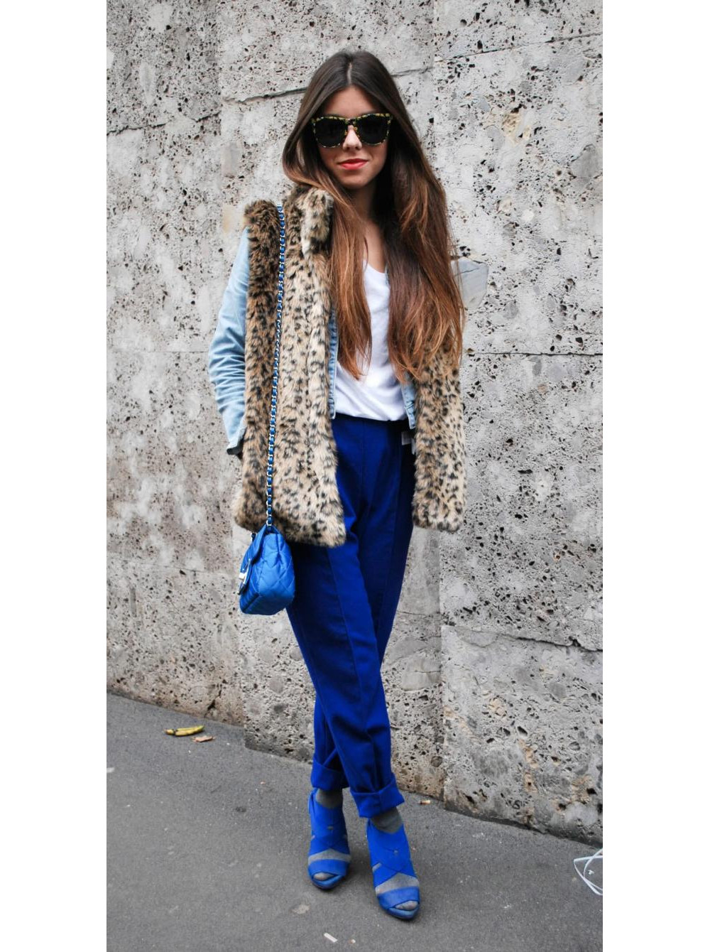 Blue suede booties will look great with a fur coat or a feminine fitted down jacket. Ankle boots with fur trim are perfect for a fur vest.