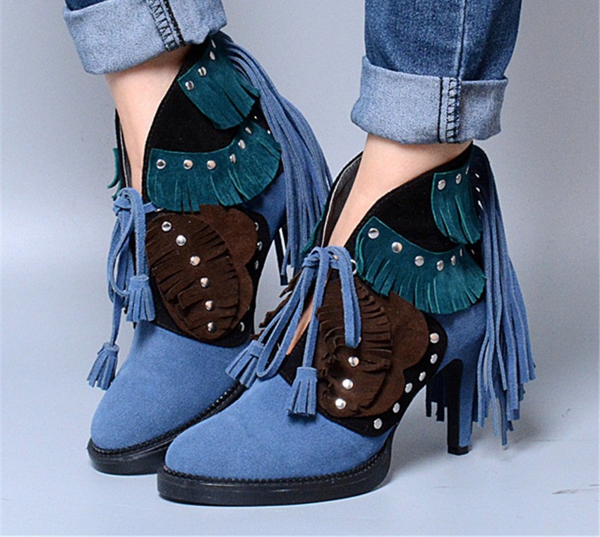Blue nubuck ankle boots are much more practical, but care for them should be much better. They are strictly forbidden to wash! You can clean it only with specialized nubuck products.