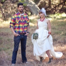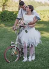 In this case, the same contrasting color is selected belt, bridal bouquet, accessories and jewelry. This image looks particularly stylish and original.