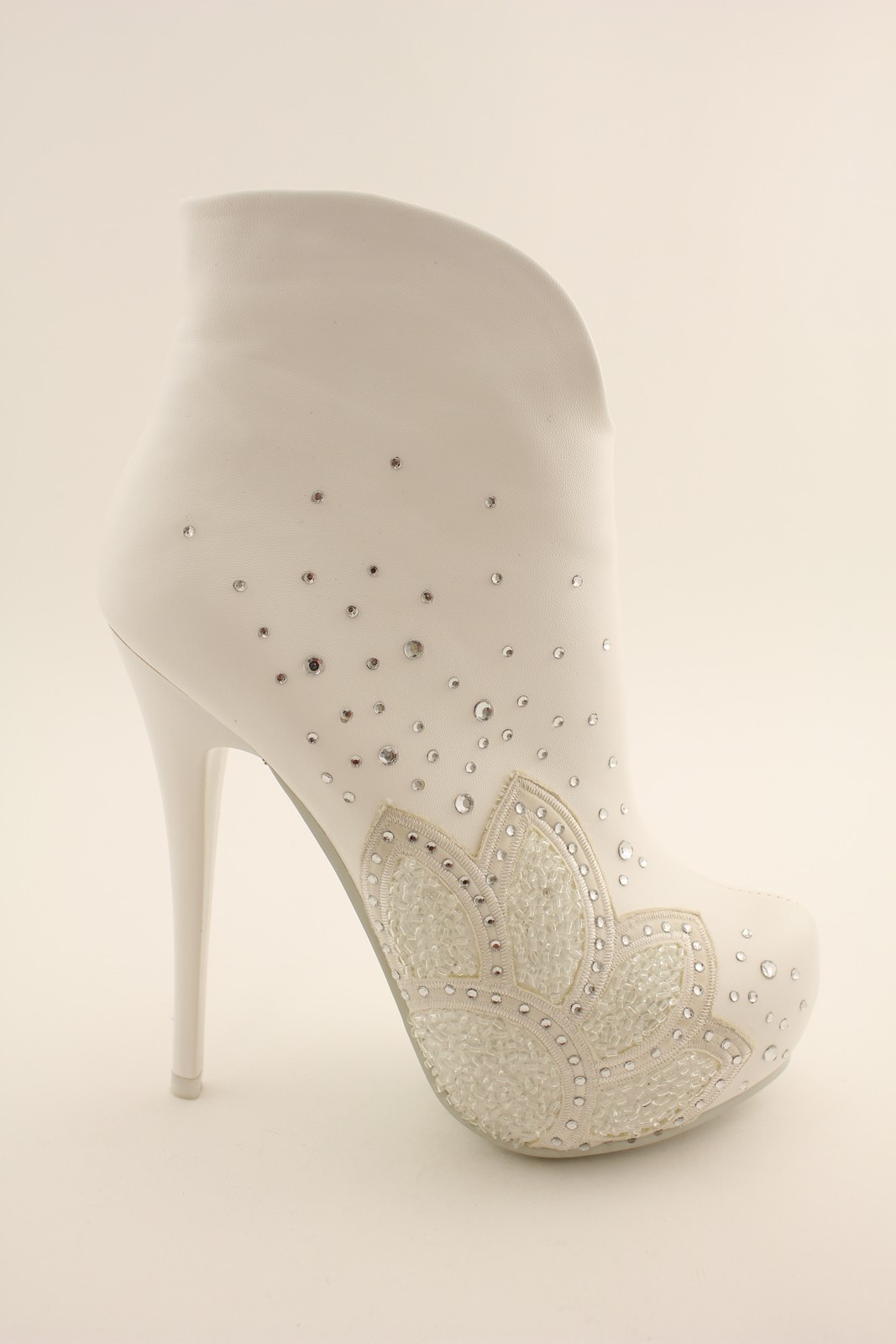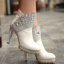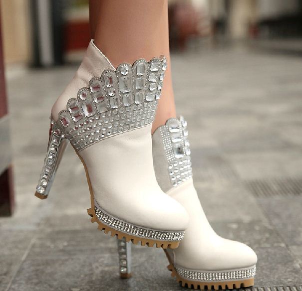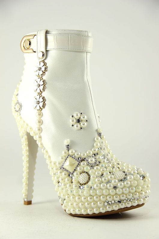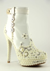 You can choose a model of white leather or suede, decorated with rhinestones, shiny mesh, stones, pearls, fur.