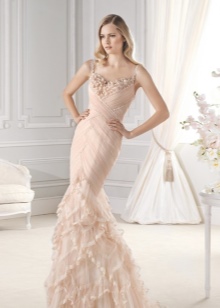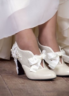 Wedding shoes suggest the presence of a high thin heel. It is always relevant, fashionable and elegant. However, if the bride in everyday life prefers shoes on a low and comfortable heel, it makes sense to pick up the same shoes and triumph so as not to feel uncomfortable.