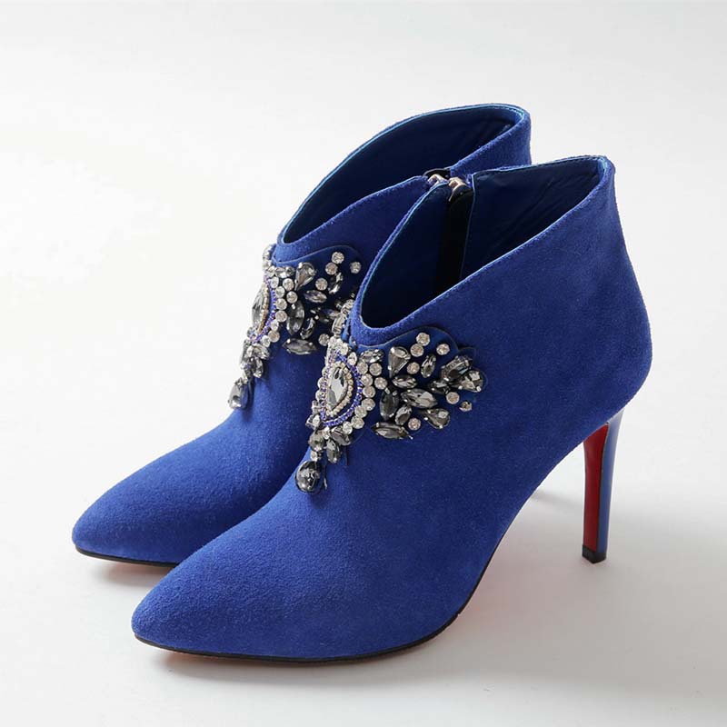 As for the decor, today various elements are used to decorate ankle boots: colorless and colored rhinestones of different sizes, satin and silk ribbons, lace and guipure, embroidery with silver and gold threads, appliqué, pearls, precious stones, metal elements, fur.