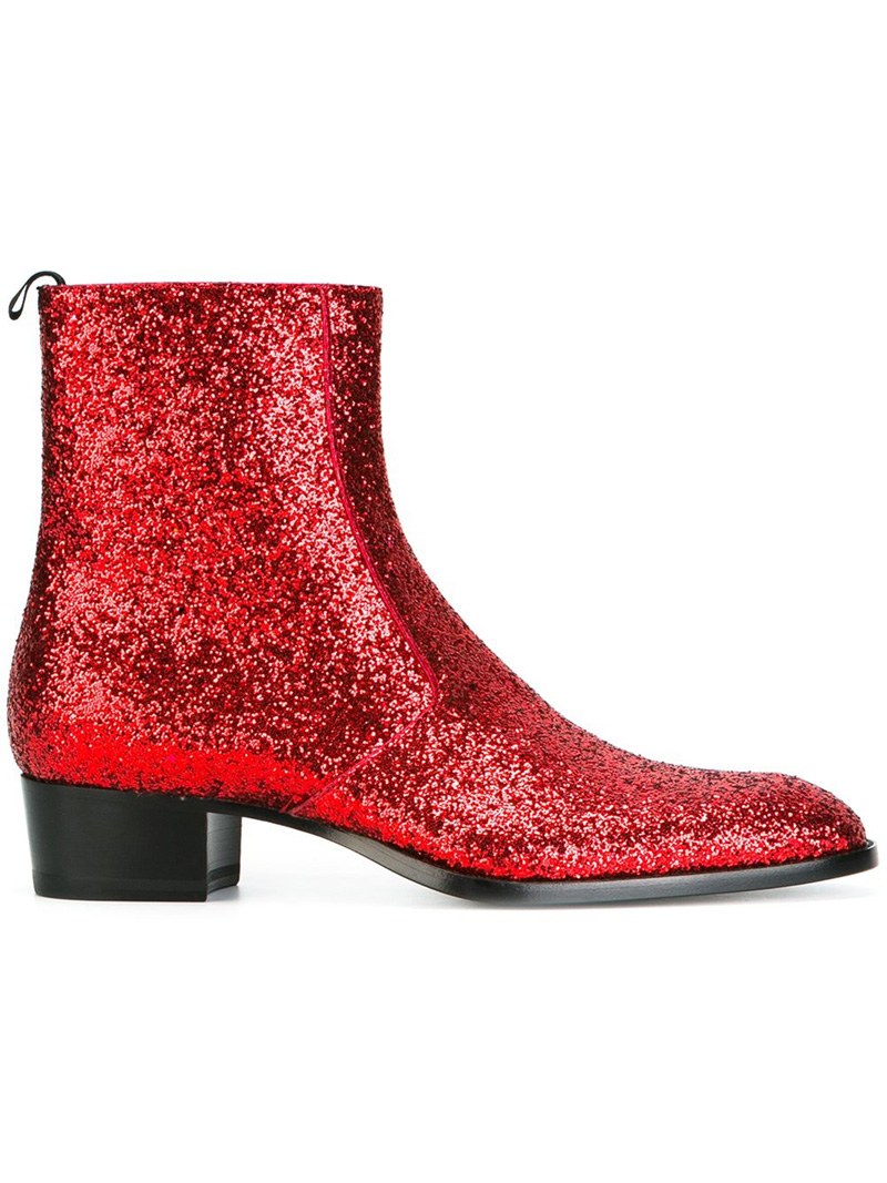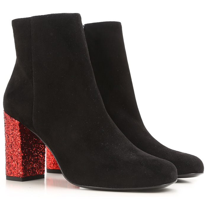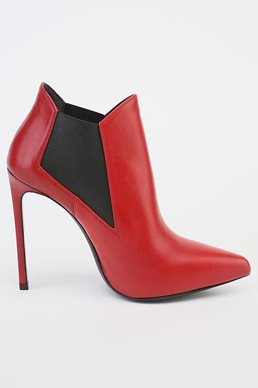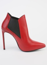In the season's collection, Edie Slimane offers catchy red ankle boots with low, square heels in the same tone as the base.
