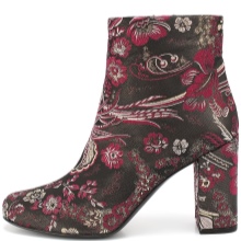 The model has a narrow toe and is fastened on the side with a zipper. Leather insole has hygienic properties and provides the foot with a favorable microclimate. The low heel height makes the shoes comfortable and comfortable for a long time. Such ankle boots are perfect for outrageous stars or bold fashionistas who are used to the looks of others.