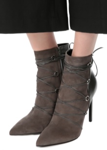 A comfortable shoe and enough freedom for the fingers make them comfortable. Precise fixation allows gait to be as natural and easy as possible.The combined shoe boots made of leather and suede look very nice. Models of classic length are separated by the contrast of materials: the back and the heel are made of leather, and the leather lacing, threaded into large metal rings, is decorated with suede. The narrow top tightly fits the contours of the legs, making it slim.