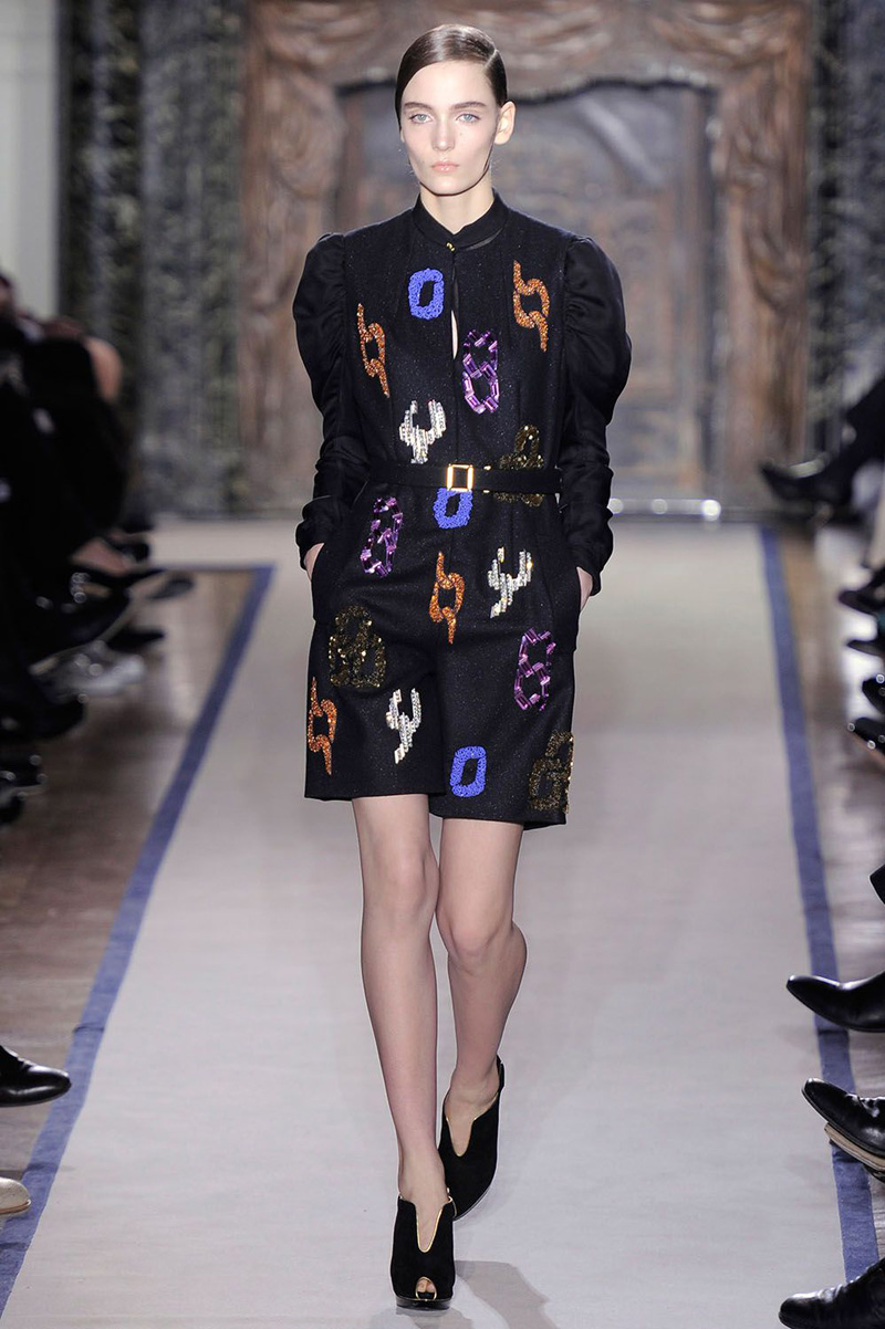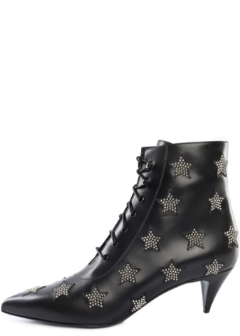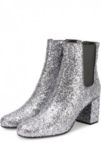 For fans of a small heel, the couturier offers a special refinement: sparkling ankle boots with glitter, decorated with a print of velvet stars. They are convenient because instead of a fastener they have elastic inserts on the sides. This is not only a functional detail, but also a peculiar decor of shoes.