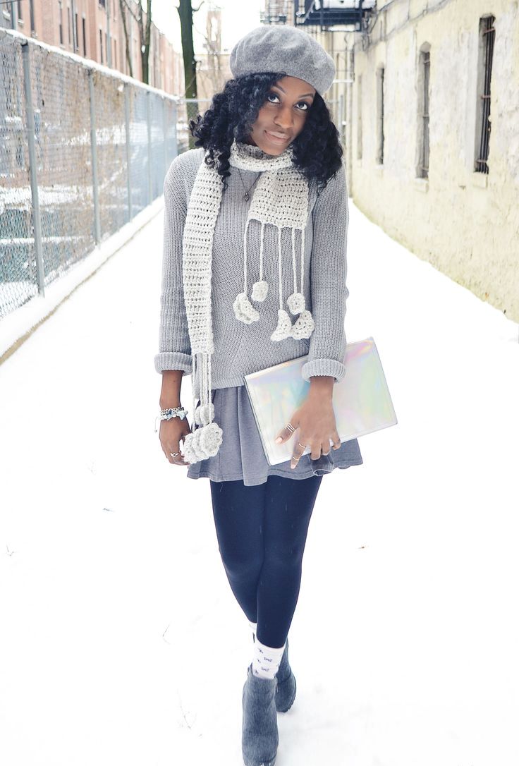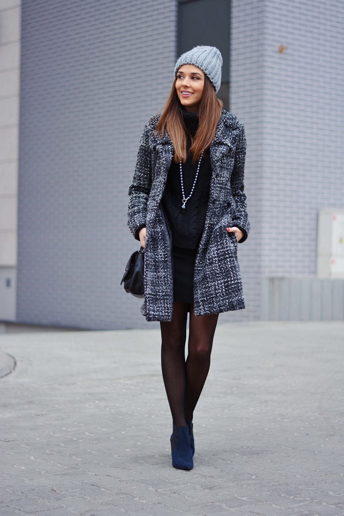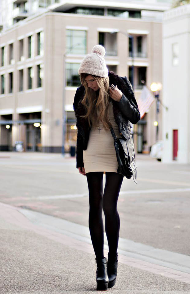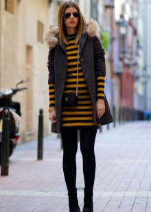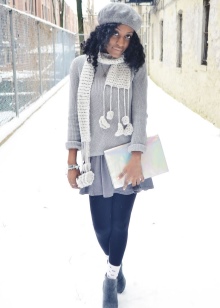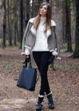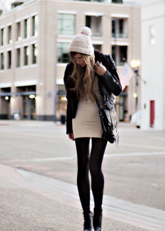 It is possible to combine winter shoe boots with leggings in the case of an ensemble with tunics, knitted dresses, a cardigan or a long voluminous sweater.
