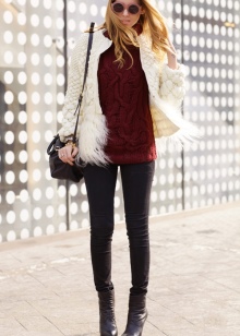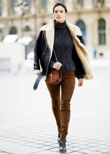 Since this is a cold season, it is worth mentioning the warmed trousers - it is better to choose skinny models that can be tucked into shoes.