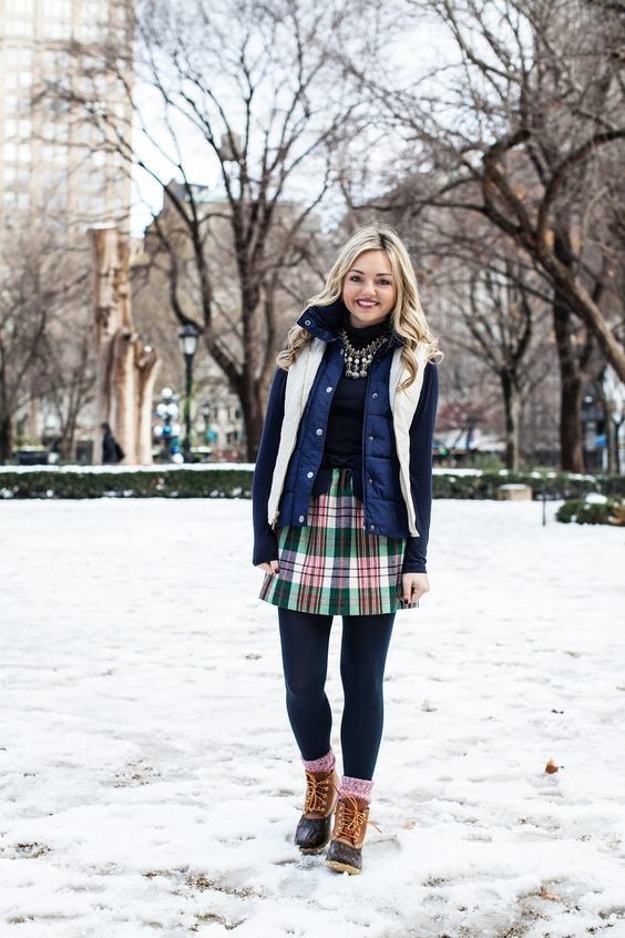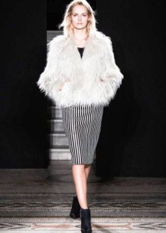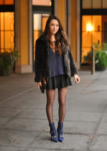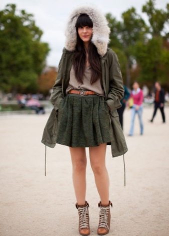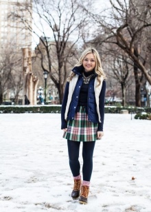 Skirts of any style and color are harmoniously combined with winter boots. The main thing is that the skirt was consistent with the outerwear.There is an interesting tendency to combine ankle boots and a skirt - the heavier the sole and the thicker the heel of the shoe, the more free the style of the skirt.