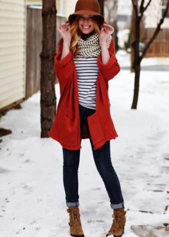 Winter boots on a wide heel are absolutely not combined with the business, office style, but they look harmonious with: