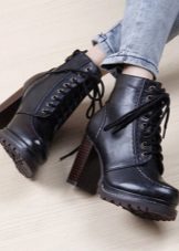 The fashionable decision this season is shoe boots with a tractor sole. This terrain is also very functional: it provides comfort on an icy road.