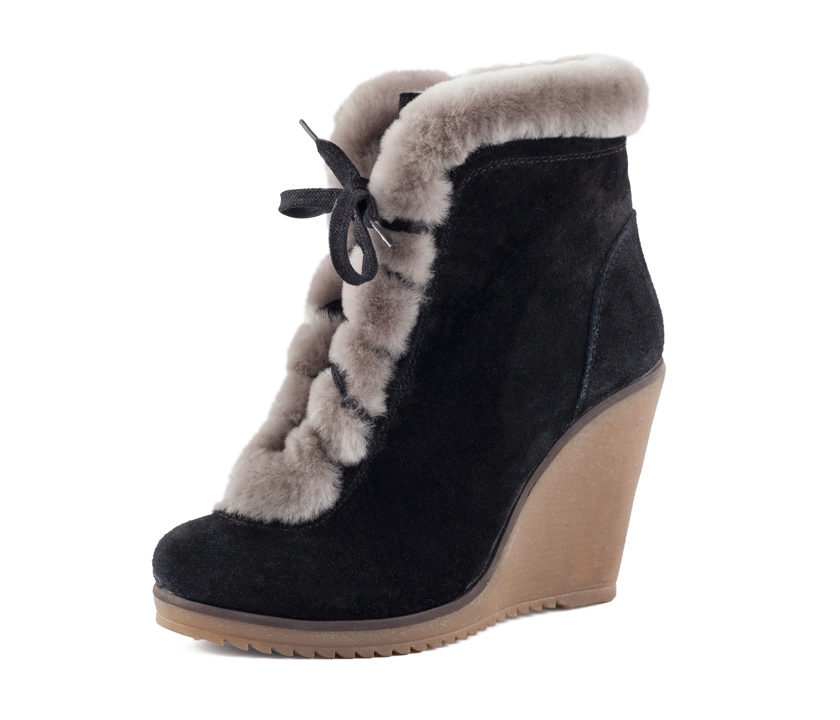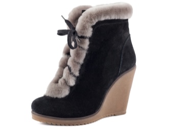 Original looks winter shoes wedge. It provides stability in the ice. In addition, a similar variant of the sole also determines the stylistic orientation of the image. Tanket is more or less massive, which allows you to adjust the female silhouette, make it visually more slender. Therefore, ankle boots with wedges are distinguished by a wide or narrow sole, very high with a massive toe portion or completely flat. The latter option is suitable for tall girls, you should not just choose a too thin sole - the legs in this case will freeze.