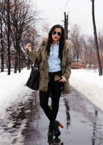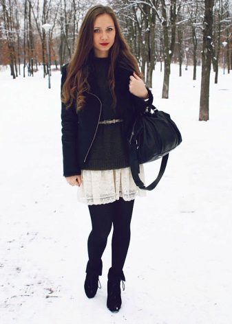 Ankle boots with fur trim can be worn with dresses or skirts, in this case you should choose short clothes and be sure to complement the ensemble with tight tights to match the tone of the shoes (however, if the boots are light, this condition is not mandatory).