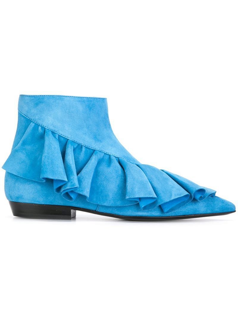 As you know, ruffles and ruffles are the decorative decoration of clothing, but today many designers are experimenting and decorating shoes in the same way. Romantic ruffles on ankle boots look no less harmonious than on feminine dresses and skirts.