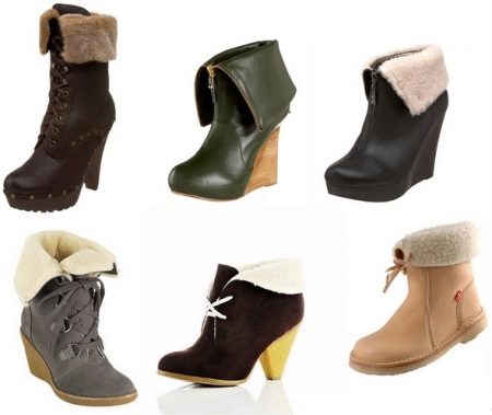 Any ankle boots, including winter, differ in their sole. This can be a heel or wedge. As for the heel, here any woman of fashion will find an option to his liking: a thick, steady, elegant hairpin. The hairpin is, of course, an option for special occasions, for everyday wear in winter it is inconvenient. For every day it is better to choose ankle boots with thick heels that are in fashion today. This is especially true if you are short. Heel height also varies: from high to very small. By the way, the height of the heel in many respects determines the type of fur for finishing ankle boots.