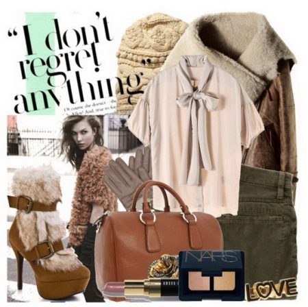 The choice of attire for a combination with winter boots is determined, first of all, by the style of the shoe, as well as by the type of its decoration. For example, a model with fur cuffs are worn under tight warm pants or leggings. At the same time, if you have not very long legs, then trousers and ankle boots should be of the same tone.
