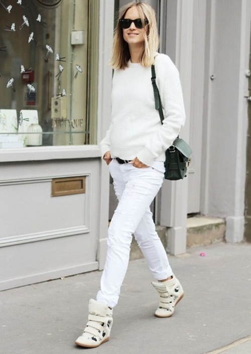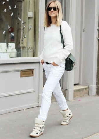 White shoes have the ability to visually shorten the silhouette of their owner, which is why stylists do not recommend buying shoes of this color to low girls. However, it is worth considering the fact that the combination of white shoes with white pants at high waist, on the contrary, can visually make a girl taller, so before buying any pair of shoes you should take into account the rest of the already existing wardrobe.