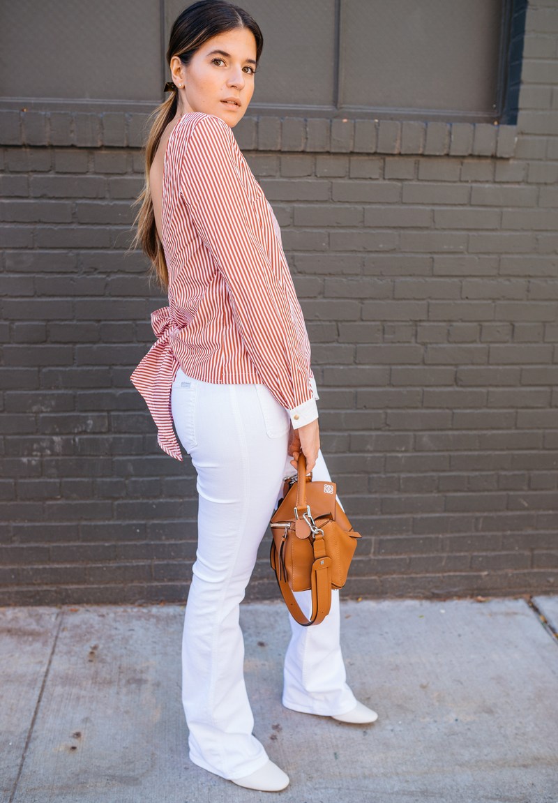 A more spring version could be a pleated skirt or a fitted jersey, and for brighter memorable bows a leather skirt.