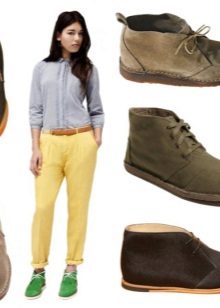 Low-run models with laces are great for almost any look. At the peak of popularity are oxfords that can be worn with skirts and blouses for work, skinny jeans and sweaters for walking, leggings or trousers with tunics, sweatshirts, and hoodies for club parties. Even with knitted dresses and lace sweaters you can wear such shoes. Laces are often used by designers not only for practical purposes, but also as an element of decor. If the laces are different in color from the shoes themselves, then when choosing clothes you need to consider this point. But with what you really should not combine such shoes, so it is with long skirts, outerwear, which covers the knees, short pants and shapeless clothes.