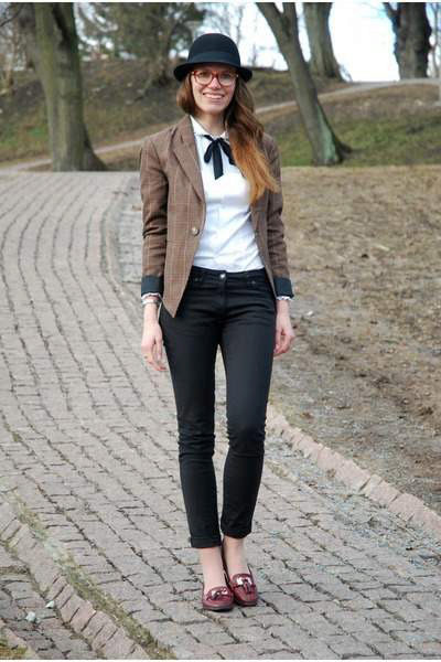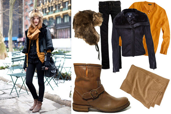 - Black trousers are best for brown boots. It is possible and even desirable to add a brown element to the image (bag, gloves, headdress).