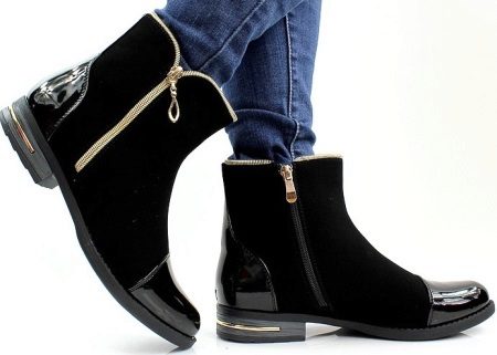 Autumn boots are made of leather, leatherette and suede. The first option is most preferable for the autumn period, since genuine leather is the most practical material. It is easy to clean, does not let in moisture and does not absorb dirt, is easy to take care of and can be painted independently. But suede shoes are appreciated for their beautiful appearance and indispensability when creating a casual style. These shoes can be worn in dry weather, combining it with tight pants or your favorite jeans. Combined models in which leather with lacquer or suede can be combined is a separate topic for conversation. Such models are loved by all fashionistas who seek to create interesting images from simple things.