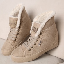 Branded models for winter equipped with a fur or wool lining and insole. High women's shoes can have a soft and warm cushion framing the tops or ankles. Such a part may be colored in a color different from the rest of the shoe surface. The product can be complemented by a lacing on the rise.