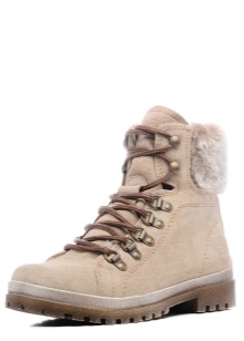The world famous brand Tamaris gives fashionable women the widest range of beautiful and comfortable shoes. Beige models of boots for a winter season cover a top and have fur registration of top. Contrast brown lacing will provide a more secure retention of shoes on the foot.