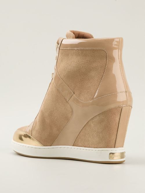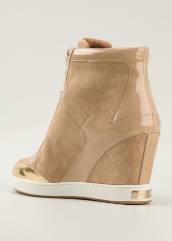 The wedge can have the same color with the entire surface of the shoe or be contrasted: darker or lighter.
