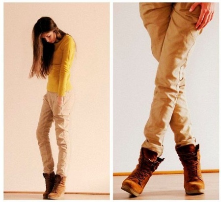 However, wearing such products should only be in dry weather. The beige color, like white, is rather capricious and easily soiled.