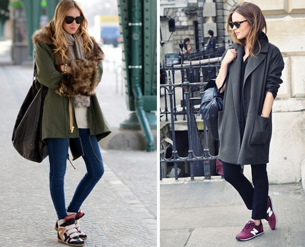 In women’s and men’s shoes, sneakers will look great with skinny jeans and warm jeans, leggings and leggings, juggins, leather trousers, wide men’s jeans, and military-style camouflage pants.