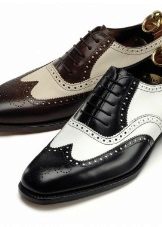 Modern brogues are presented from various combinations of materials - matte leather with lacquered, textiles with lacquered leather.
