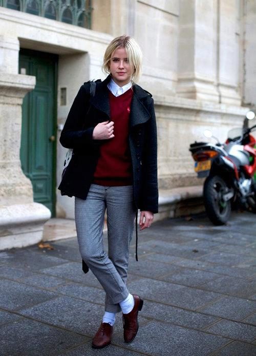 When choosing a wardrobe in combination with brogues, it is necessary to take into account the color gamut, length and proportions of the silhouette.
