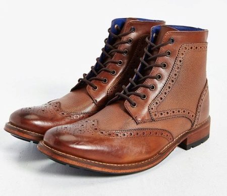 There are also options for brogues in the form of high boots with lacing. Such models are worn in the offseason or in a damp climate. Winter models can also be in high performance with insulation.