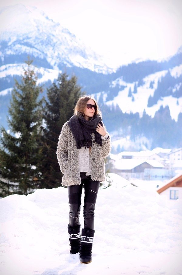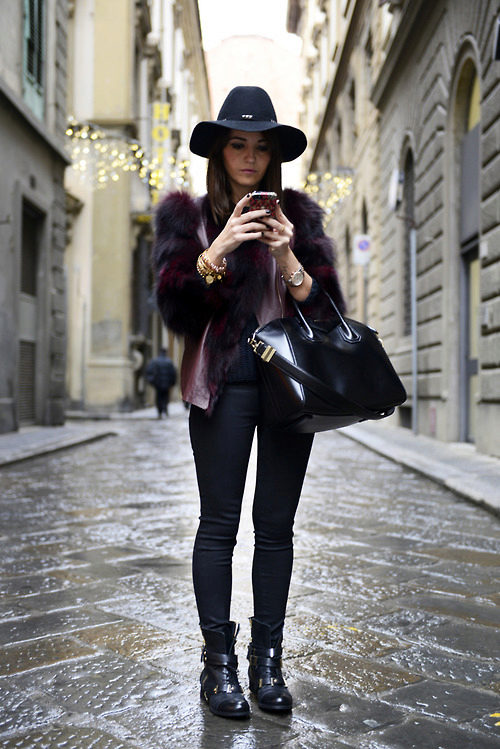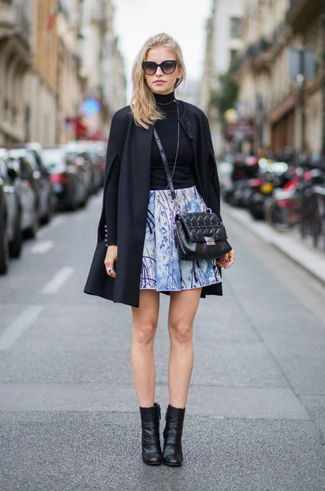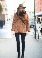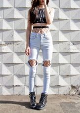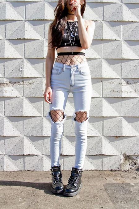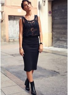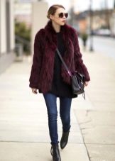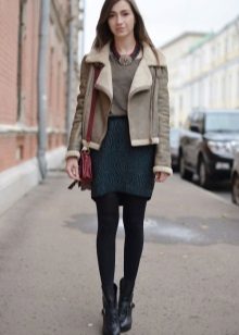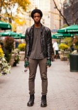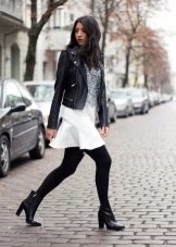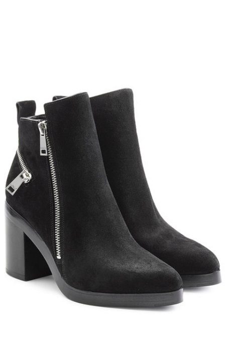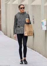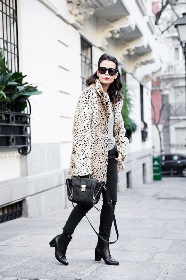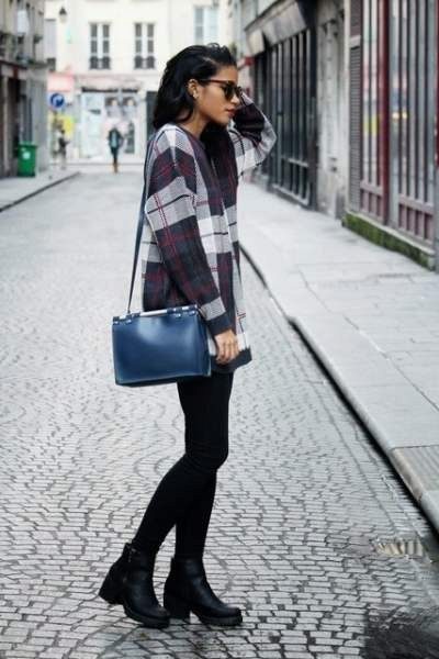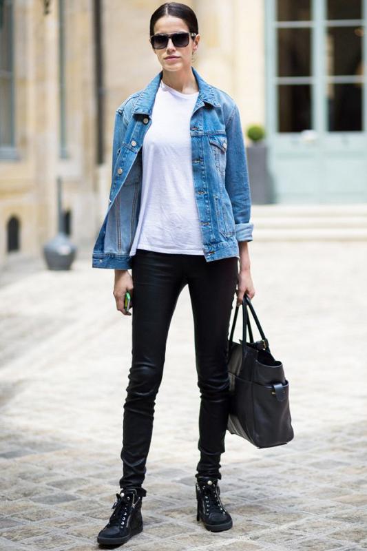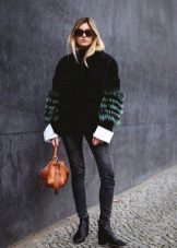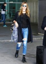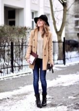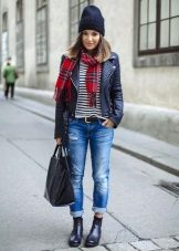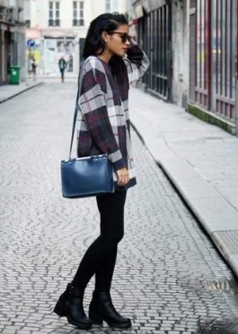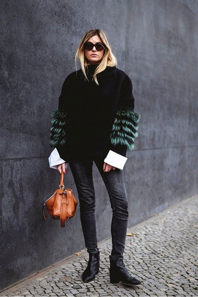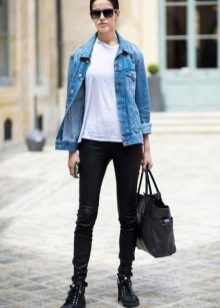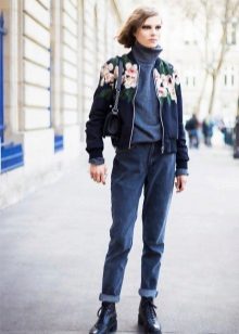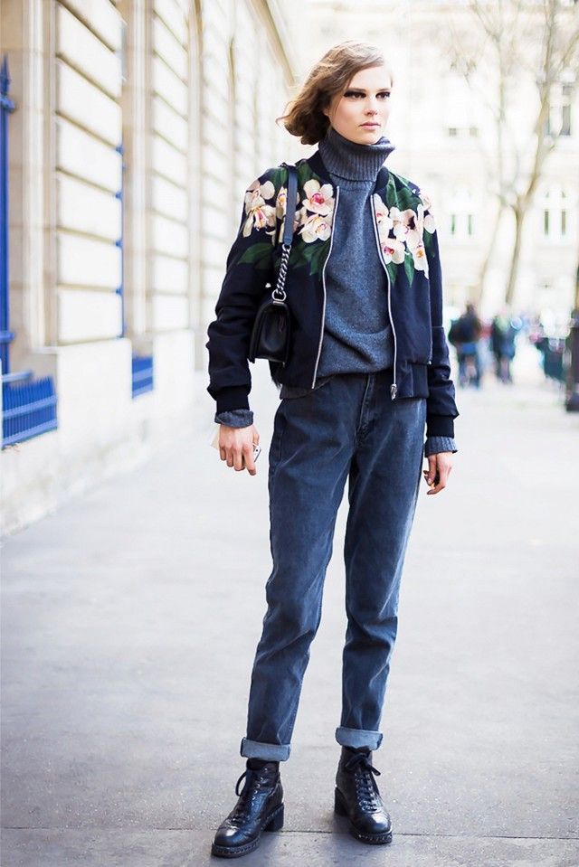 Black boots are perfect for jeans of any style. These can be skinny, boyfriends or trendy mom-jeans now.If you want your legs to look longer, choose black jeans. But if you are not afraid of experiments, you can choose light or blue. They will look great with a bomber jacket or blazer.