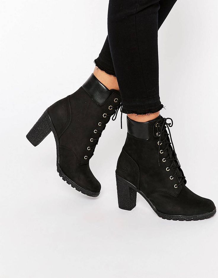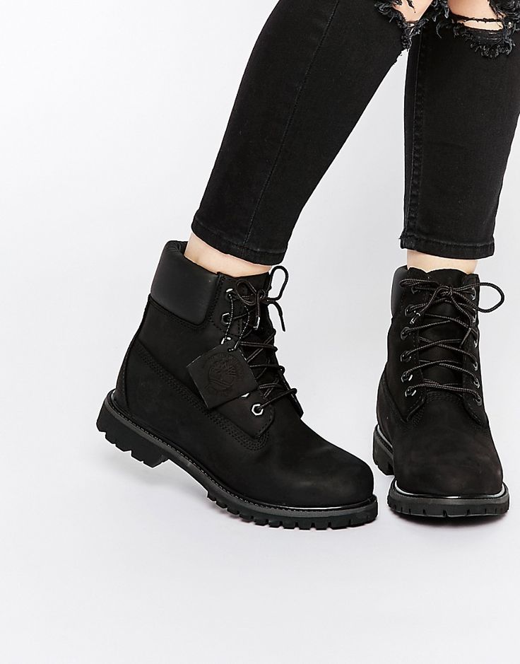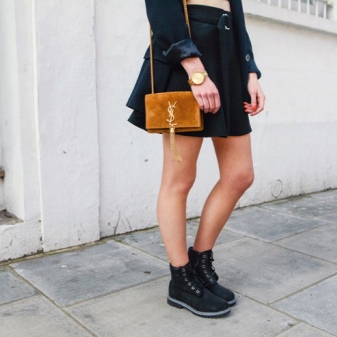 Timberland boots are not the first year at the peak of popularity. Classic is still considered red, but black is more versatile and practical. You can wear them all with the same plaid shirt, tight jeans, jacket, leather jacket, and you can try to combine with a light airy dress.