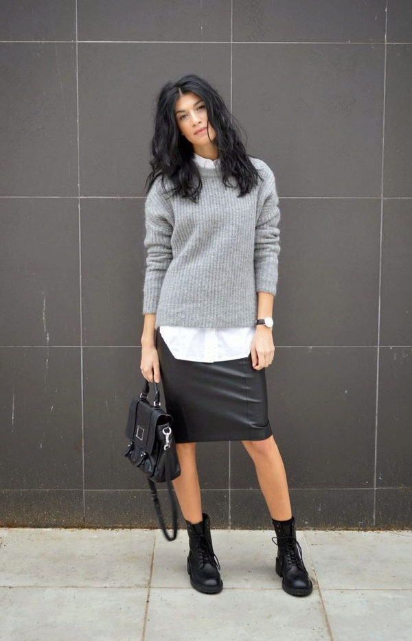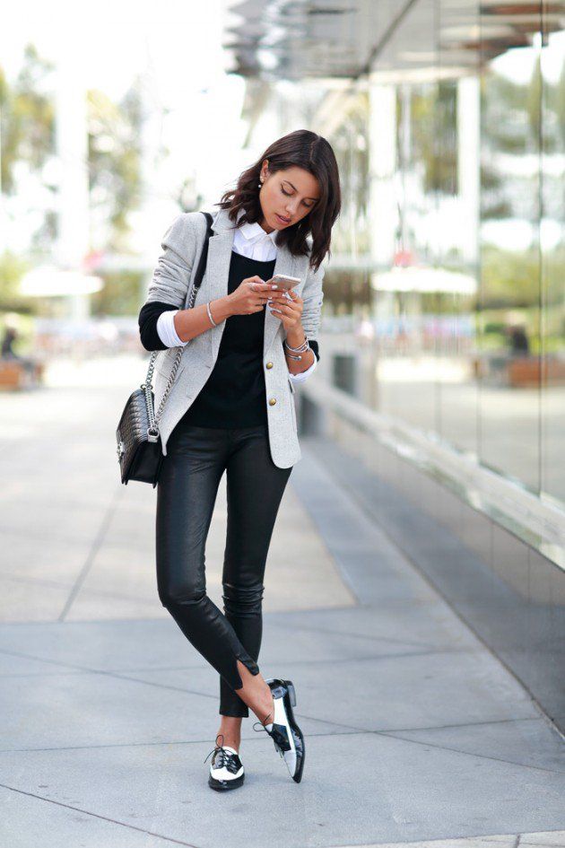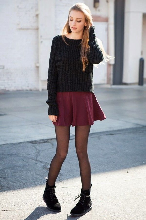 Rough women's shoes are in fashion today, but this does not mean that they should be worn with masculine clothes. For example, combine them with light blouses and pleated skirts for a gentle, feminine look. From above you can wear a coarse-knit sweater or a leather jacket. You can also try wearing black shoes with a dress on the floor or a long chiffon skirt. This is not the best solution for every day, but it is ideal for a romantic date.
