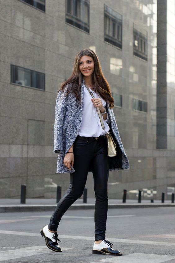 Black and white shoes - this is a real classic, which will never lose its relevance. In addition, they are able to give a zest to even the most strict image. They can be worn with jeans and dresses, but best of all they will look with a business suit.For everyday wear, it is better to pick up interesting shoes in black with a white sole.