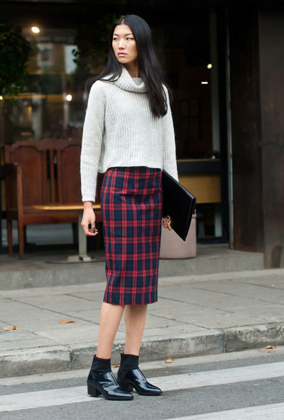 So that shoes do not visually "cut" your leg in half, pick them up in tune with pants or tights.