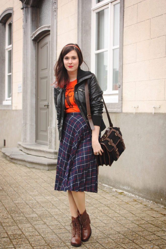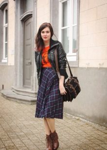 - Another win-win is a midi skirt (it can be a colorful one), a plain shirt, a shoulder bag and boots. Bag and shoes can be the same tone or different, but always brown. It is important that the ensemble does not turn out motley. Therefore, the bright element should be one. In our case it is a skirt.