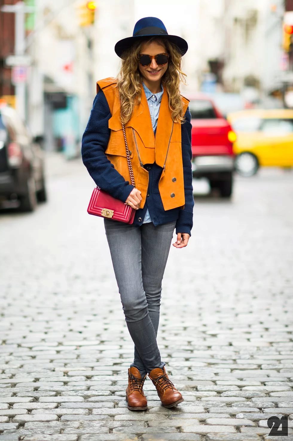 What color pants fit? Gray, beige, green, even yellow. If you choose blue, let the ensemble be such a color. Do not pick accessories blue.