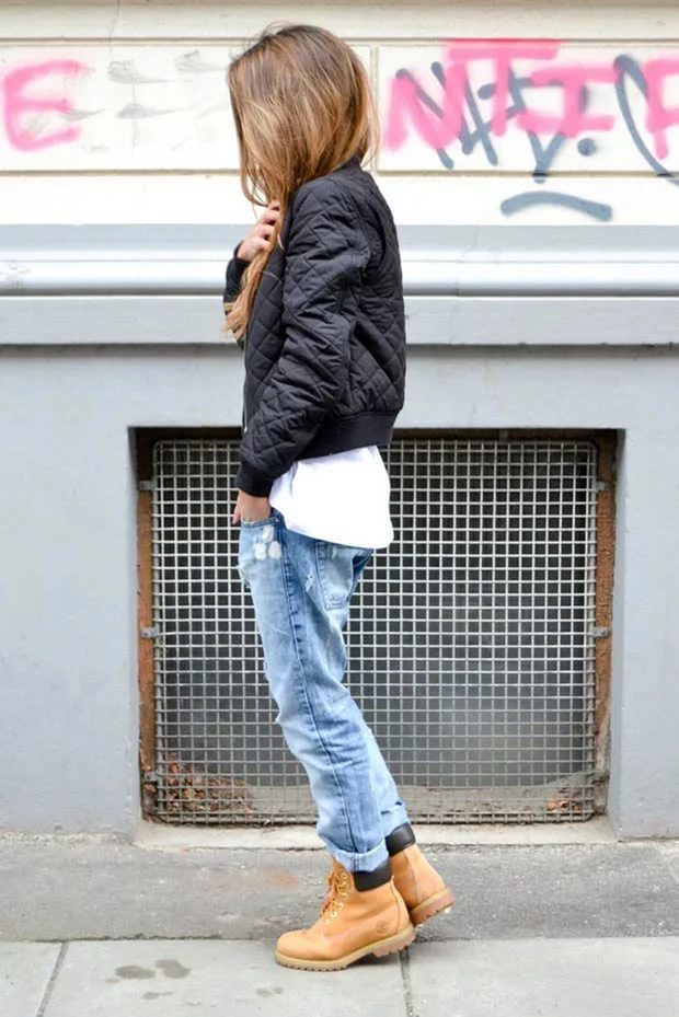 In spring and autumn, when the weather is unstable - either snow, slush, or rain, brutal lace-up boots will be a wonderful choice. They fit the jacket, which has long migrated from the male to the female wardrobe and enjoys great popularity among the weaker sex.