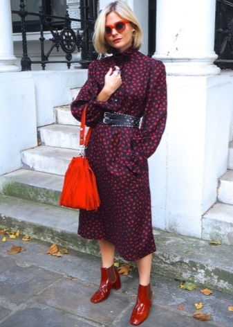 A classic rounded sock plus a straight, small heel is a great option for every day. A red shoes on a hill or heels can be safely worn with dresses of different lengths.