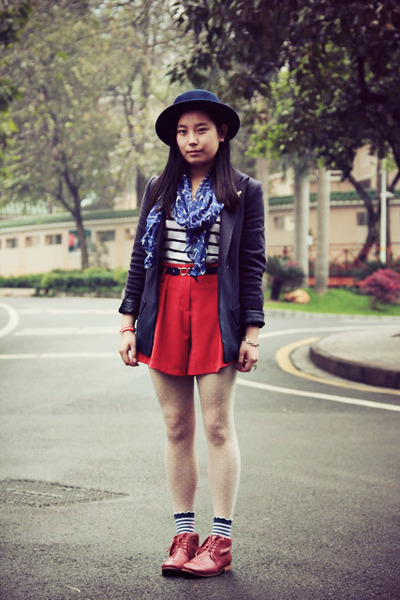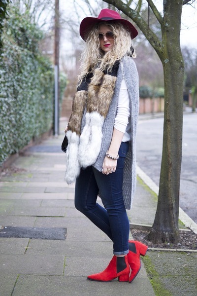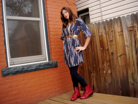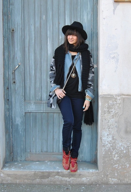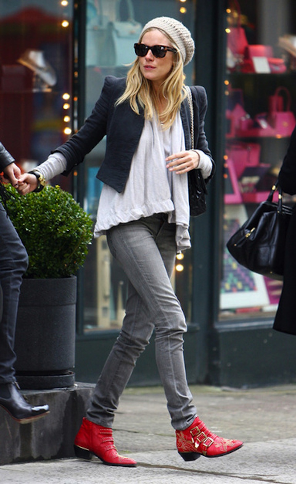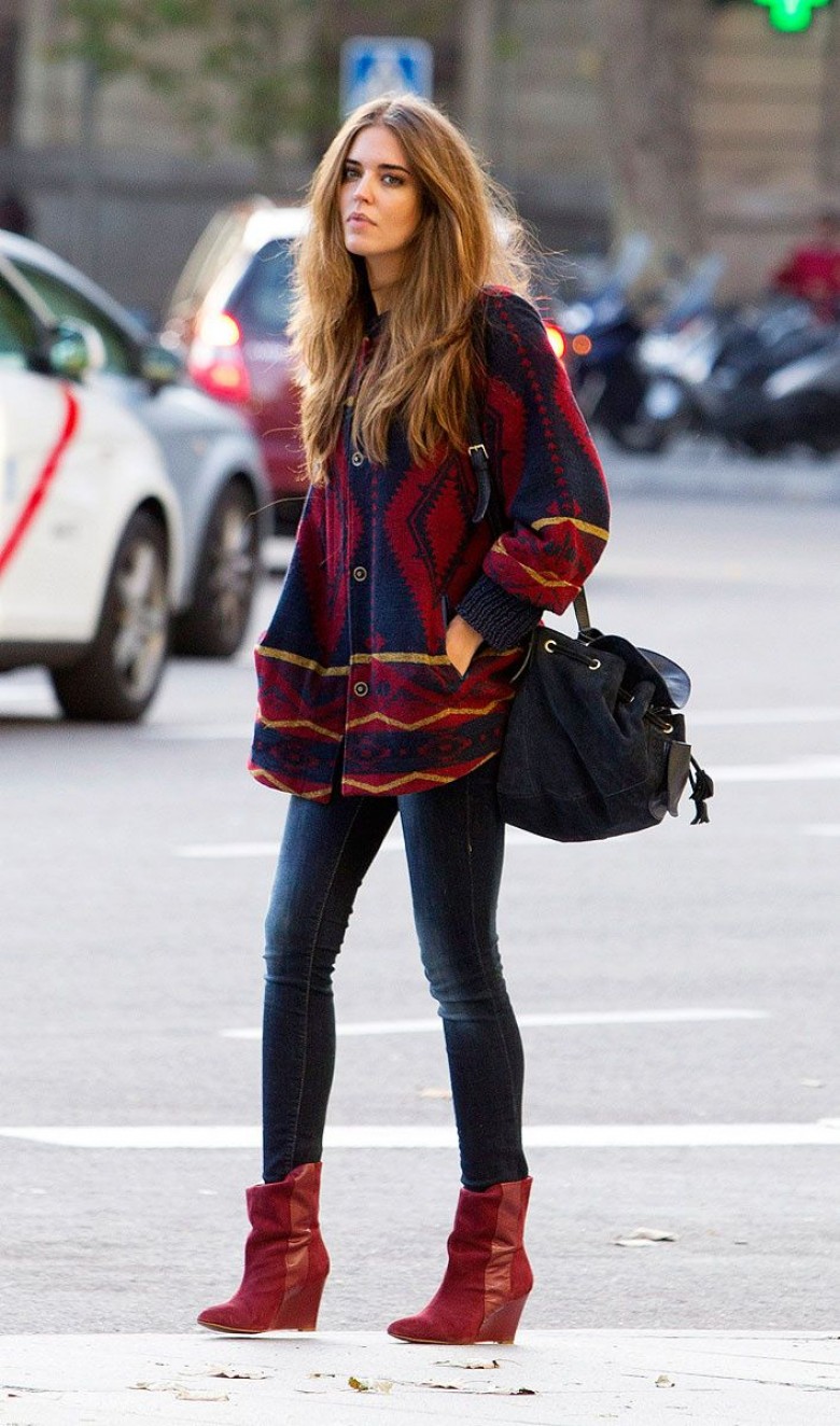 Beige things go perfectly with the red boot - they will dim the brightness of red and allow you to achieve the most soft image.