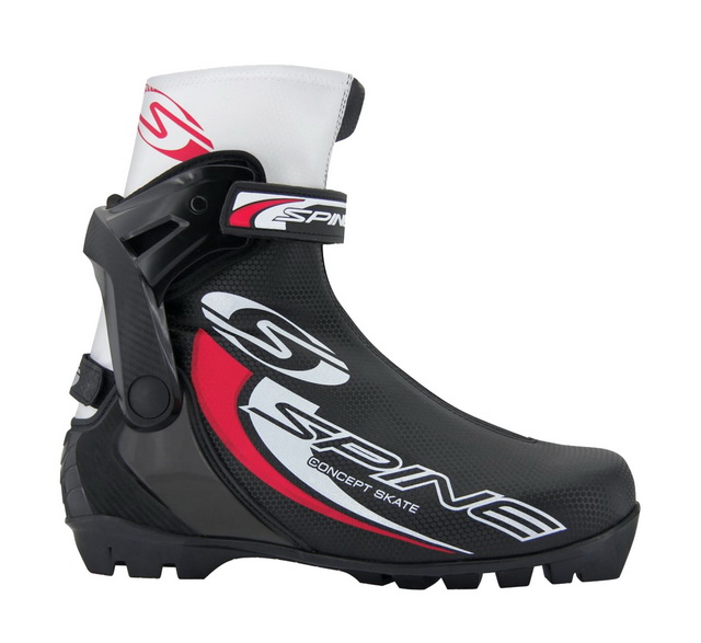 For skating. High boots with a cuff, firmly fix the lower leg, have a hard sole and are designed for professional ski training.