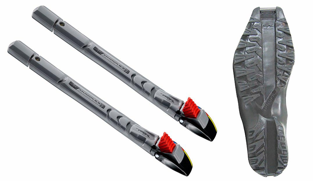 SNS is a special mount made for cross-country skiing. Boots fasten by means of a longitudinal guide, the toe fits snugly to the rubber stop.