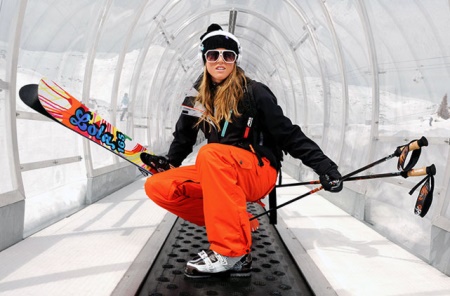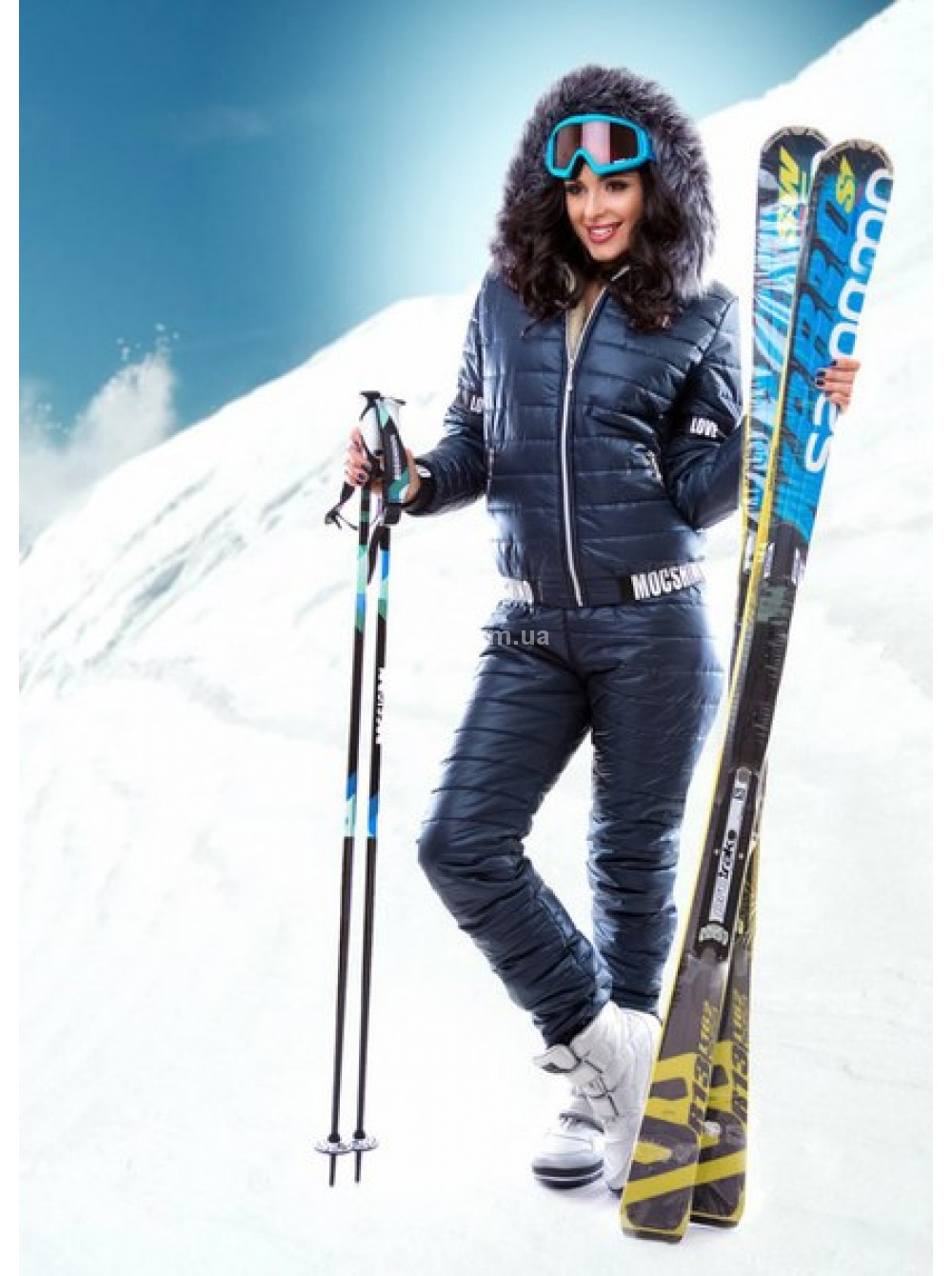 The choice of sports items provided by this brand is quite large. Among them are ski boots made in the same color range as skis and ski poles.