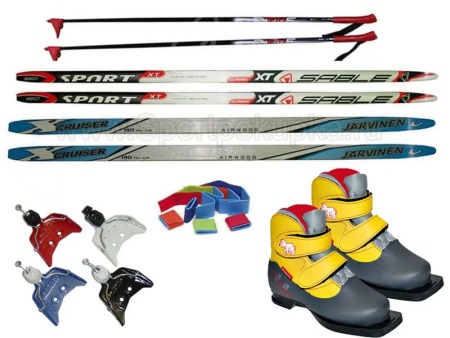 The most common kit, which is available in sporting goods stores, consists of ski boots and special covers for them. Covers are necessary for proper storage of ski shoes and protection of all embedded parts required for fastening.