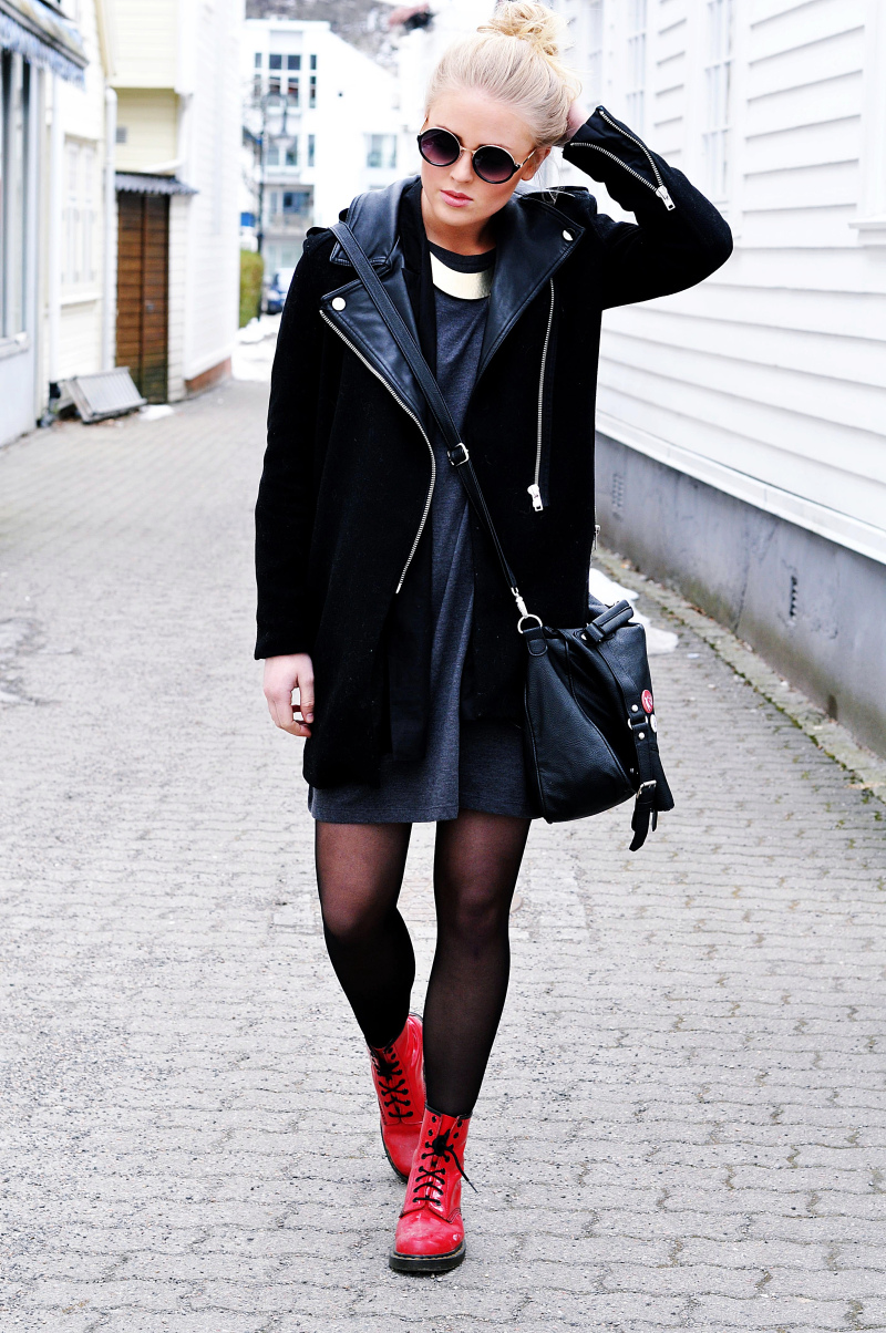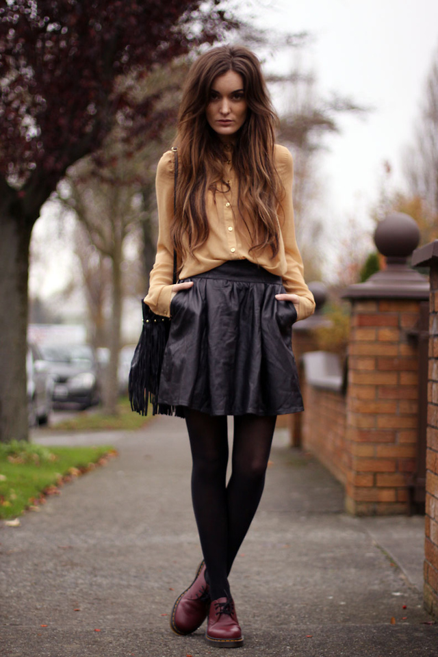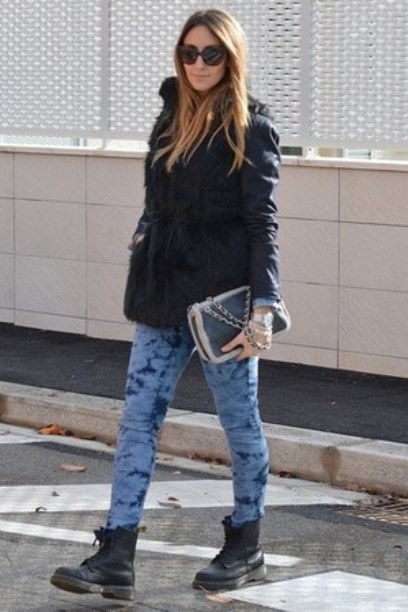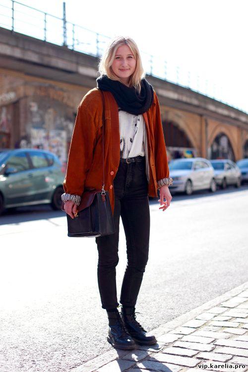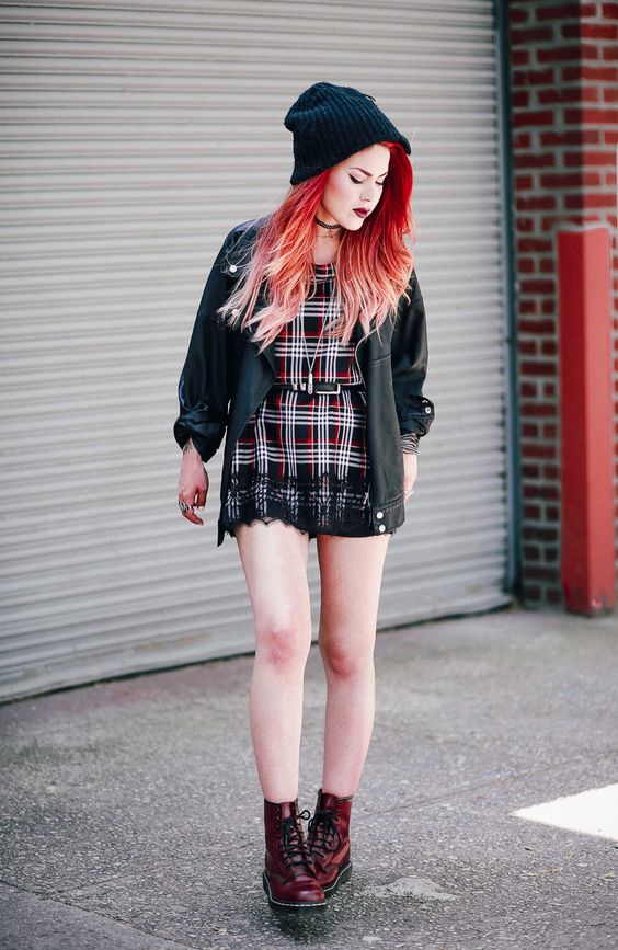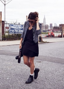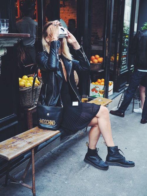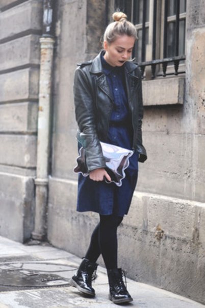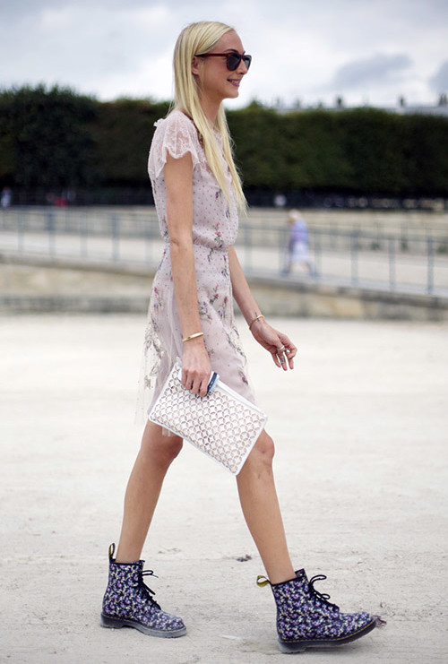 A great combination of martinsov, airy dress and leather jacket or denim jacket. You can wear them with a skirt-sun or a pencil and a light blouse with a flirty pattern.