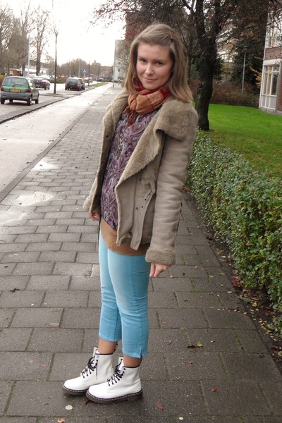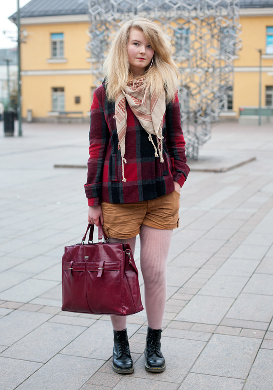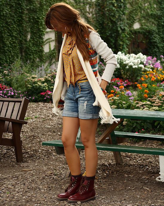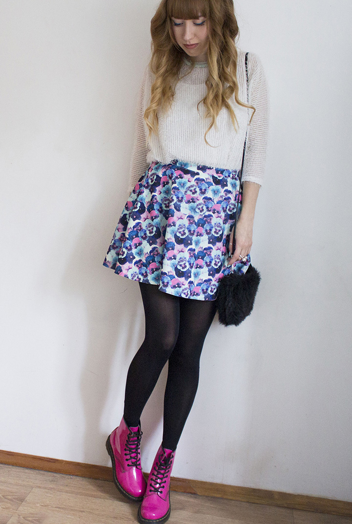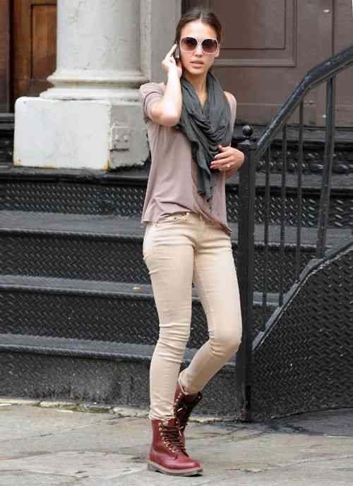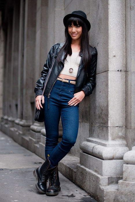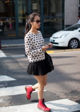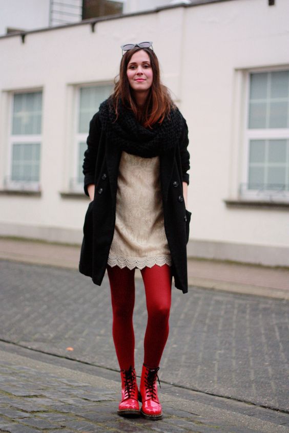 A great combination of martinsov, airy dress and leather jacket or denim jacket. You can wear them with a skirt-sun or a pencil and a light blouse with a flirty pattern.