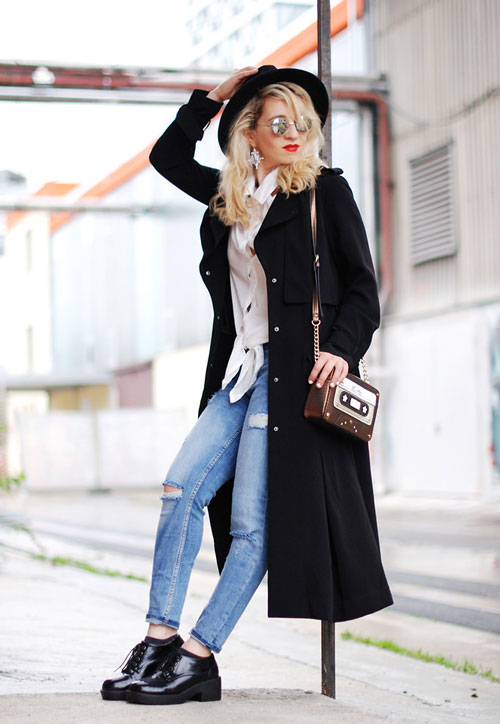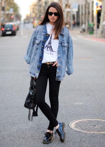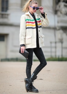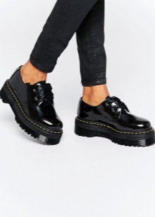 However, these are the perfect shoes for a bad girl look. Ripped jeans, dark lipstick, dark glasses, a leather jacket and coarse shoes - and a stylish look is ready, which has not been associated with informals for a long time. This is a completely universal outfit, which is suitable for any unofficial event. At least for shopping, at least for a party. Convenient, relevant and moderately bold.